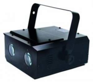 Beschreibung: Mit zwei Lichtaustritten und jeweils 2 sich unabhängig drehenden Reflektoren und Deflektoren. Der Efffekt schaltet selbstständig nach einem integriertem Programm die Lampen zwischen linken und rechten Lichtaustritt. Unterschiedliche Drehgeschwindigkeiten der Reflektoren. Musikgetaktet über engebautes Mikrofon. Über einen Drehregler ist das Ansprechverhalten des Lichteffekts regelbar.