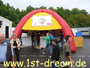 Beschreibung: Der Partydome ist ein selbsttragendes, aufblasbares Zelt mit fünf Füßen .