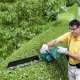 Elektroheckenschere für mittelgroße und mittelstarke Hecken mit Messerschnellstopp für erhöhte Sicherheit.