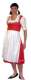 Längs gestreiftes Dirndl in rot weiß mit Schürze Rot weißes, längsgestreiftes Dirndl mit weißer Schürze |