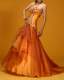 Abendkleid in gold/orange Organza mit vergoldeten Plättchen. |