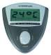 -Anzeige von: Trainingsdistanz, Zeit, Geschwindigkeit, Trittfrequenz, Kalorienverbrauch und Raumtemperatur