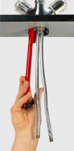 Beschreibung: Mit dem Standhahnmutternschlüssel kann man die schwer zugängliche Mutter des Standhahns auf der Unterseite des Wasch- bzw. Spülbeckens lösen oder festziehen.
