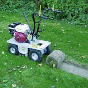 Beschreibung: Mit dem Rasensodenschneider schneiden Sie einfach Bahnen wie bei der Rasensodenproduktion, rollen diese zusammen und tragen sie ab. Durch das leichte Gewicht und die einfache Bedienung kann der Rasensodenschneider in jeder Anlage eingesetzt werden.