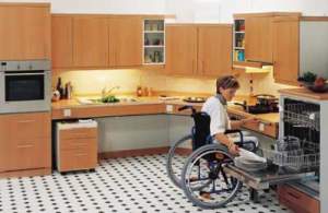 Unsere Küche für Senioren und bewegungsbeeinträchtigte Menschen mit motorisch höhenverstellbaren Oberschränken und Arbeitsplatten und hohem Sicherheitsstandard für den Bediener.